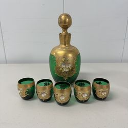 Vintage Green Glass Decanter Set w/ Gold Gilt & 5 Shot Glasses$90North Wales, PA