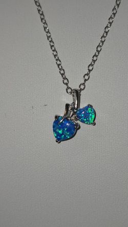 Silver Blue Opal Hearts Pendant & Silver Chain $20Queens, NY