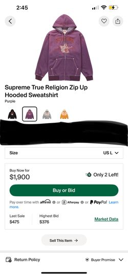Supreme Collaboration w/ True Religion Purple Zip up hooded sweatshirt Limited edition$1,900Glendale, CA