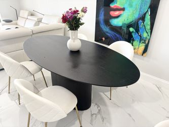 Black Oval Wood Dinning Table With White Leather Chairs $750Pembroke Pines, FL
