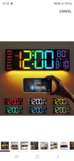 16.2" Large Digital Wall Clock with Bluetooth Sync, Alarm, Big LED, 8 RGB Color, Auto DST, Temperature$30Lacey, WA