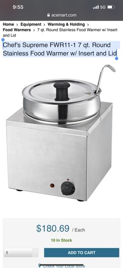Chef's Supreme FWR11-1 7 qt. Round Stainless Food Warmer w/ Insert and Lid$90Plano, TX