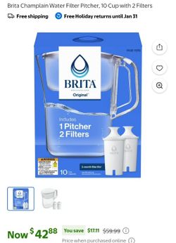 Brita Champlain Water Filter Pitcher, 10 Cup with 2 Filters$20Quartz Hill, CA