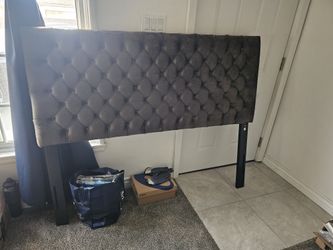 Queen/ Full Headboard Home Jezebel Velvet, Grey / Black Steel