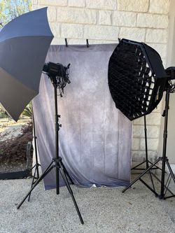 COMPLETE PRO STUDIO SETUP – Strobes, Softboxes, & 3-Backdrop System & Portable Green-screen$650Austin, TX