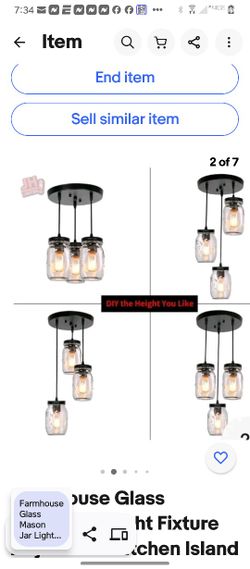 Farmhouse Glass Mason Jar Light Fixture Adjustable Kitchen Island Pendant Light$40Lithia Springs, GA