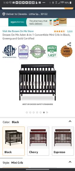 Dream On Me Aden 4-in-1 Convertible Mini Crib in Black $20Douglasville, GA