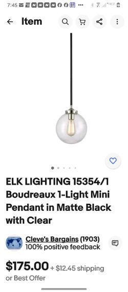 ELK LIGHTING 15354/1 Boudreaux 1-Light Mini Pendant in Matte Black$125Lithia Springs, GA