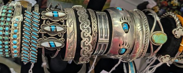 Old Pawn Navajo Sandcast Sterling and Turquoise Cuff Bracelet$249St. Petersburg, FL