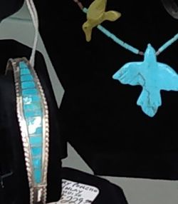 Native American Zuni Mary Poncho Signed SM Turquoise Inlay Sterling Silver Cuff Bracelet$229St. Petersburg, FL