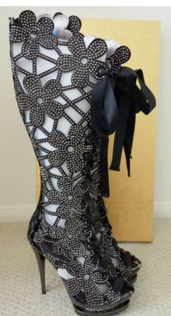 LADY COUTURE LACE UP FLORAL STILETTO BLACK BOOTS - Sz 39$70Hollywood, FL