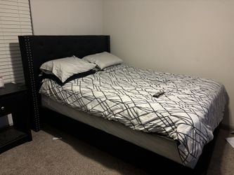 Platform Queen Bed With Mattress With Nightstand $300Hampton, GA