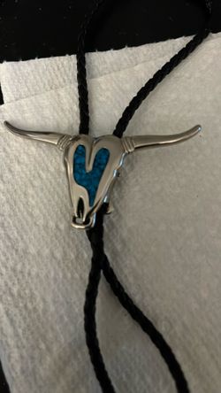 Bolo Tie Silver With Blue Crush Turquoise Longhorn $50Riverside, CA