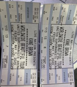 Kane Brown Tickets For Tonight!!!, They were for last year but got canceled and postponed for today.$200Midland, TX