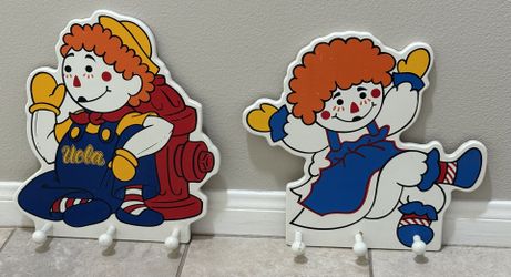 RAGGEDY ANN ANDY UCLA NURSERY WALL HANGINGS CLOTHES HOOKS LOT OF 2 MEASURES 17 H X 16 W Asking $15 $15Apple Valley, CA
