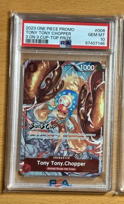 One piece TCG PSA 10 Chopper 3 On 3 Top Prize$800Los Angeles, CA
