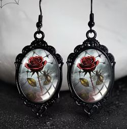 ♥️🌹Stunning Rose & Bee Glass Cabachon Earrings $5Fontana, CA