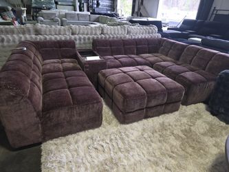 Brand New Lifestyle Dalton Burgandy Dream 6pc Modular Sectional w Matching Ottoman & Power Console$900Willow Spring, NC