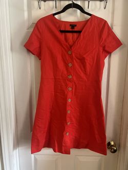 Ann Taylor Dress Bright red Size 4 Linen Cotton Blend Full Button Comfy Casual $25Franklinton, NC