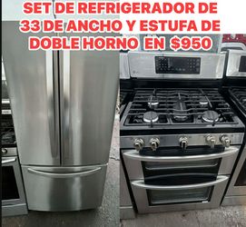 BONITO SET DE REFRIGERADOR DE PANTALLA STEEL Y ESTUFA BOBLE HORNO SEMI NUEVO $1,880Chicago, IL