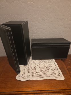 black faux leather decorative storage box with white top-stitching$10Goodyear, AZ