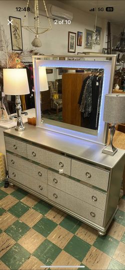 Modern Silver Lowboy Dresser w/ Lighted Mirror (Retail: $1200)$300Portland, OR