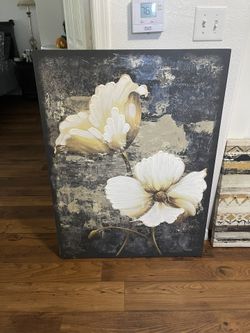 White Golden Florals Canvas Wall Art Wall Decor Flowers Decorations Home Interior Womens Furniture Floral Garden Home Decor $20Phoenix, AZ