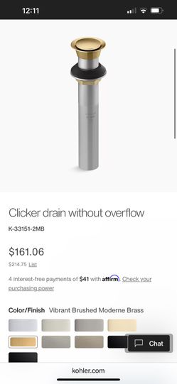 Kohler clicker Drain With Overflow $100Rancho Palos Verdes, CA