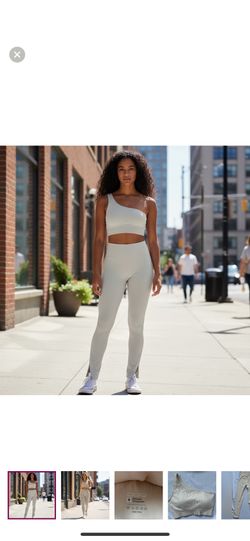New 2 Piece Ribbed Cream One-Shoulder Sports Bra & High Waist Leggings, Gym Workout Or Casual Small $30Jurupa Valley, CA