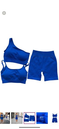 New Blue 3pc One-Shoulder & Spaghetti Strap Sports Bra & High Waist Shorts, active Gym Outfit Small$35Jurupa Valley, CA