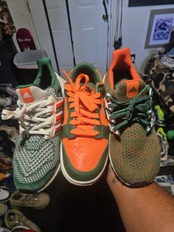 The U Pack MiamiHurricanes! 3 Pairs All Men's Size 9 Or Women's Size 10.5 All In Excellent Condition 2 UltraBoost And 1 Nike Dunk$120Scottsdale, AZ