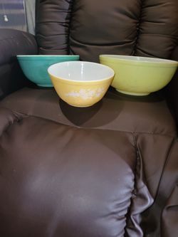 set of vintage Pyrex mixing bowls, featuring a yellow bowl with the "Butterfly Gold" pattern$55Westport, WA