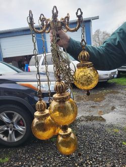 Vintage Hollywood Regency Style Amber Cracked Glass, 5 Tier "Globes" chandelier.$350Westport, WA