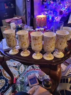 vintage ceramic studio pottery pedestal mugs with an orange and green speckled patter$50Westport, WA