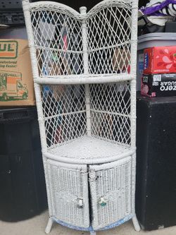 White wicker corner shelf with cabinet$50Westport, WA