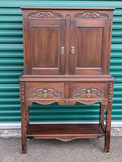 Antique McClellan Mfg Co. Jacobean Revival Utility Cabinet on Stand c. 1920s-30s$475Snohomish, WA
