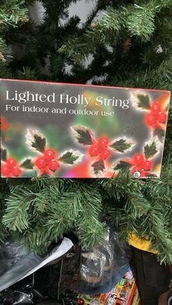 Lighted Holly On String Lights NEW U 36 Red Ball Bulbs 12 Holly Bunches$20Seatac, WA