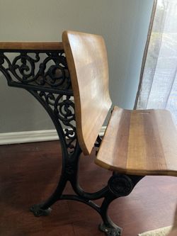 Description Vtg Antique ASC Industrial Child School Desk Folding Chair Seat Cast Iron & Wood Buffalo #4.. 28 depth with seat out 26 height 13 depth de$40Seatac, WA