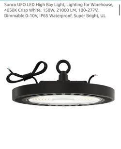 Sunco UFO LED High Bay Light, Lighting for Warehouse, 4050K Crisp White, 150W, 21000 LM, 100-277V, Dimmable 0-10V, IP65 Waterproof, Super Bright, UL$15Orlando, FL