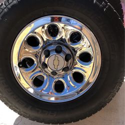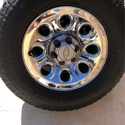4 chrome Chevy rims with tires$280Goodyear, AZ