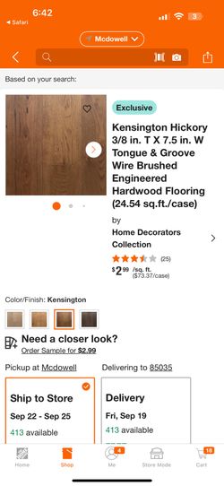 Kensington Hickory 3/8 in. T X 7.5 in. W Tongue & Groove Wire Brushed Engineered Hardwood Flooring (24.54 sq.ft./case)$0Phoenix, AZ