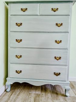 Antique metallic Tiffany blue painted chest 5 drawer dresser 34"X19.5" x46"$129Mission Viejo, CA