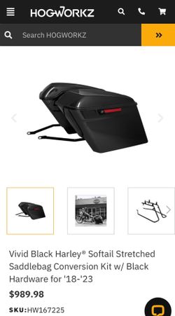 Brand New IN BOX Vivid Black Harley® Softail Stretched Saddlebags & Conversion Kit w/ Black Hardware !$750Chandler, AZ