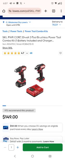 Brand New SKIL PWR CORE 20-volt 2-Tool Brushless Power Tool Combo Kit Charger Included (NO BATTERY)$70San Antonio, TX