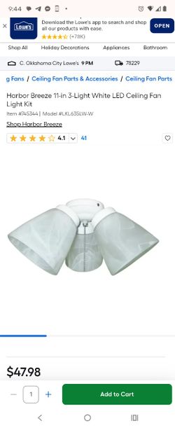 Brand New Harbor Breeze 11-in 3-Light White LED Ceiling Fan Light Kit$20San Antonio, TX