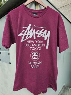 Large. Vintage Stussy Shirt Mens World Tour Skate Streetwear Surf Spell Out SS Double sided. Amazing tag. The vintage aging Is Incredible $24San Antonio, TX
