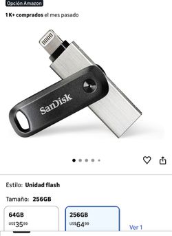 SanDisk iXpand Go 256GB Flash Drive - For your iPhone 14 or earlier - Free up space on your iPhone - SDIX60N-256G-GN6NE$35Hemet, CA