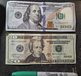 (2) Star Notes, $100 & $20 Dollar Bills. The $20 Is A Low Number And Rarer Then Most$155Chuluota, FL