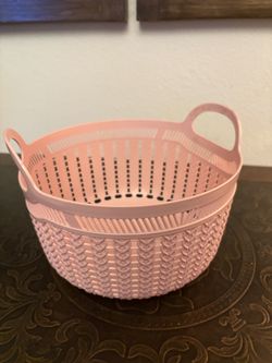 Cute pink woven plastic storage basket with handles$6Camarillo, CA