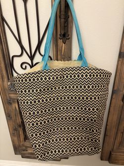 Large black and tan woven jute rope tote bag with bright blue handles$8Camarillo, CA